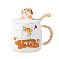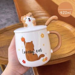 Cartoon Cat Mug With Lid Spoon Cute Ceramic