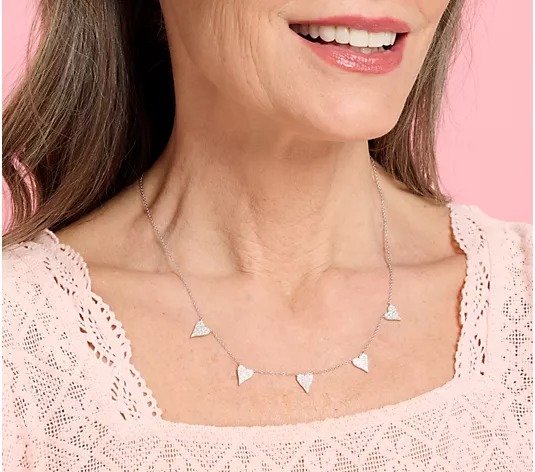 Diamonique x Jennifer Miller 5 Heart Station Necklace, Sterl