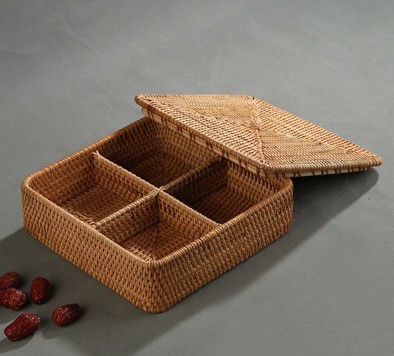 Modern Living Room Rattan Fruit Plate With Multiple Compartments And Lids