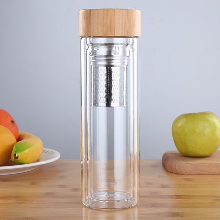 Tea water separation cups Double glass cups travel office home Stainless steel filter insulation cup